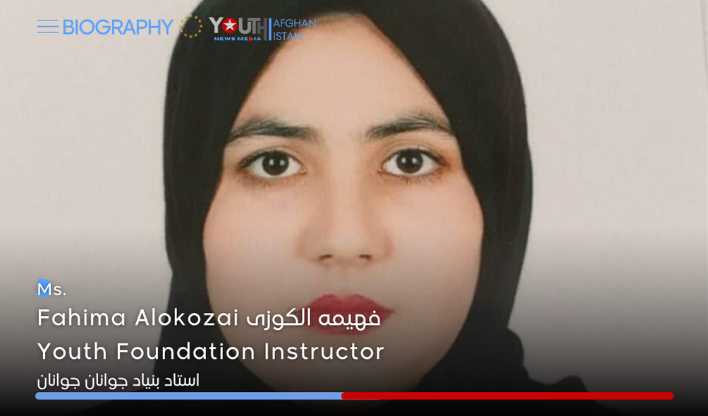 فعالیتهای اجتماعی و رضاکارانه ام شامل: – همکاری در برنامههای آموزشی سلامت برای زنان و کودکان – مشارکت در فعالیتهای داوطلبانه بنیاد جوانان افغانستان مأموریت و چشمانداز ام شامل: هدف من ارتقاء کیفیت آموزش طبابت و کمک به بهبود سلامت جامعه از طریق آموزش موثر و ترویج ارزشهای اخلاقی در طبابت است. علاقهمندیهای حرفهای ام: – آموزش و تربیت نیروی انسانی در حوزه سلامت – پژوهش و توسعه در بهداشت عمومی و مراقبتهای بهداشتی – تقویت مهارتهای طبابت و اخلاق حرفهای. – شماره تماس: ۰۷۹۲۵۳۶۶۰۹ – ایمیل: fahimaalokozay25@gmail.com